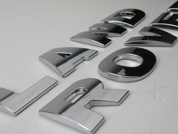 A SET OF MIRROR CHROME "LAND ROVER" BONNET LETTERS